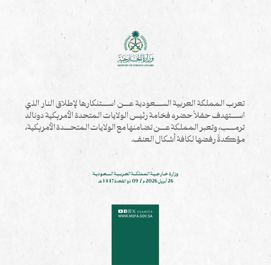 أعربت المملكة العربية السعودية عن استنكارها الشديد لحادث إطلاق النار الذي استهدف حفلاً حضره الرئيس الأمريكي دونالد ترامب، مؤكدة رفضها الكامل لكافة أشكال العنف، وجاء ذلك في بيان رسمي صادر عن وزارة الخارجية السعودية، شدد على تضامن المملكة مع الولايات المتحدة في مواجهة مثل هذه الحوادث.